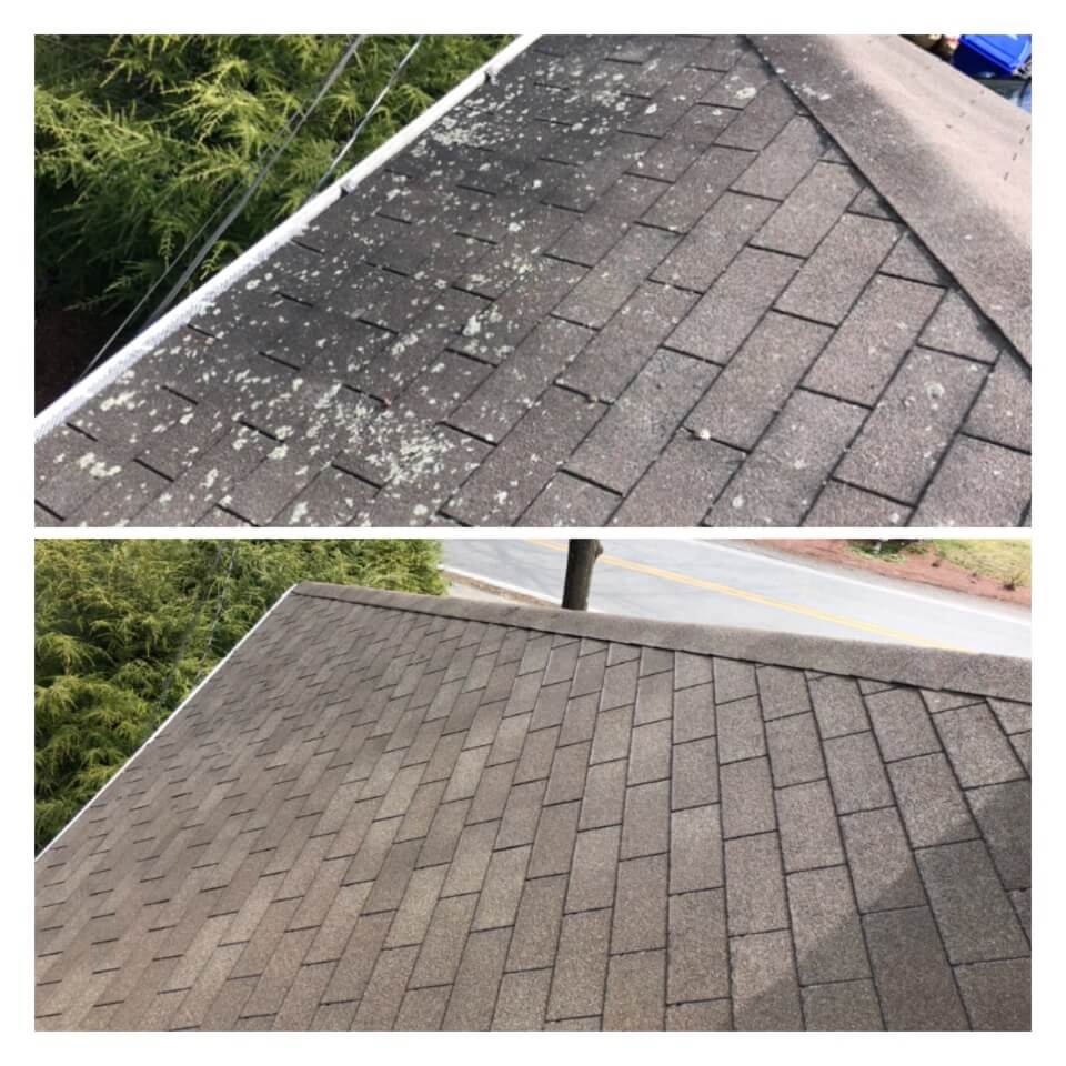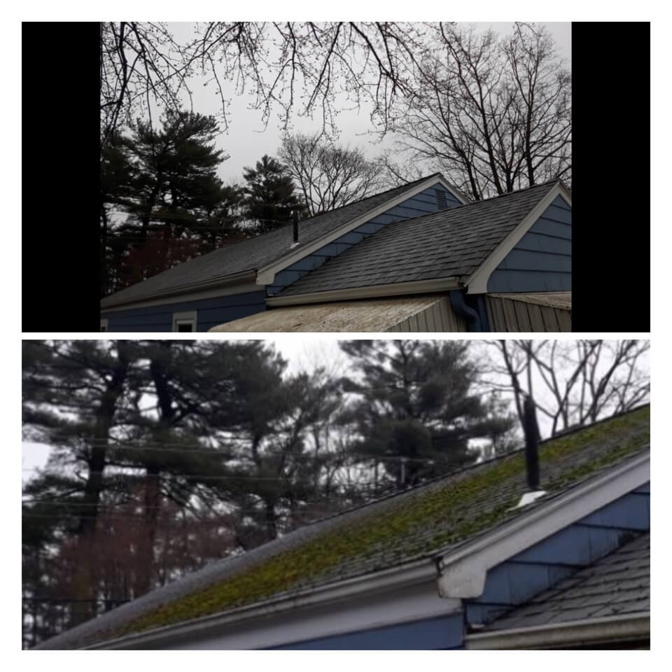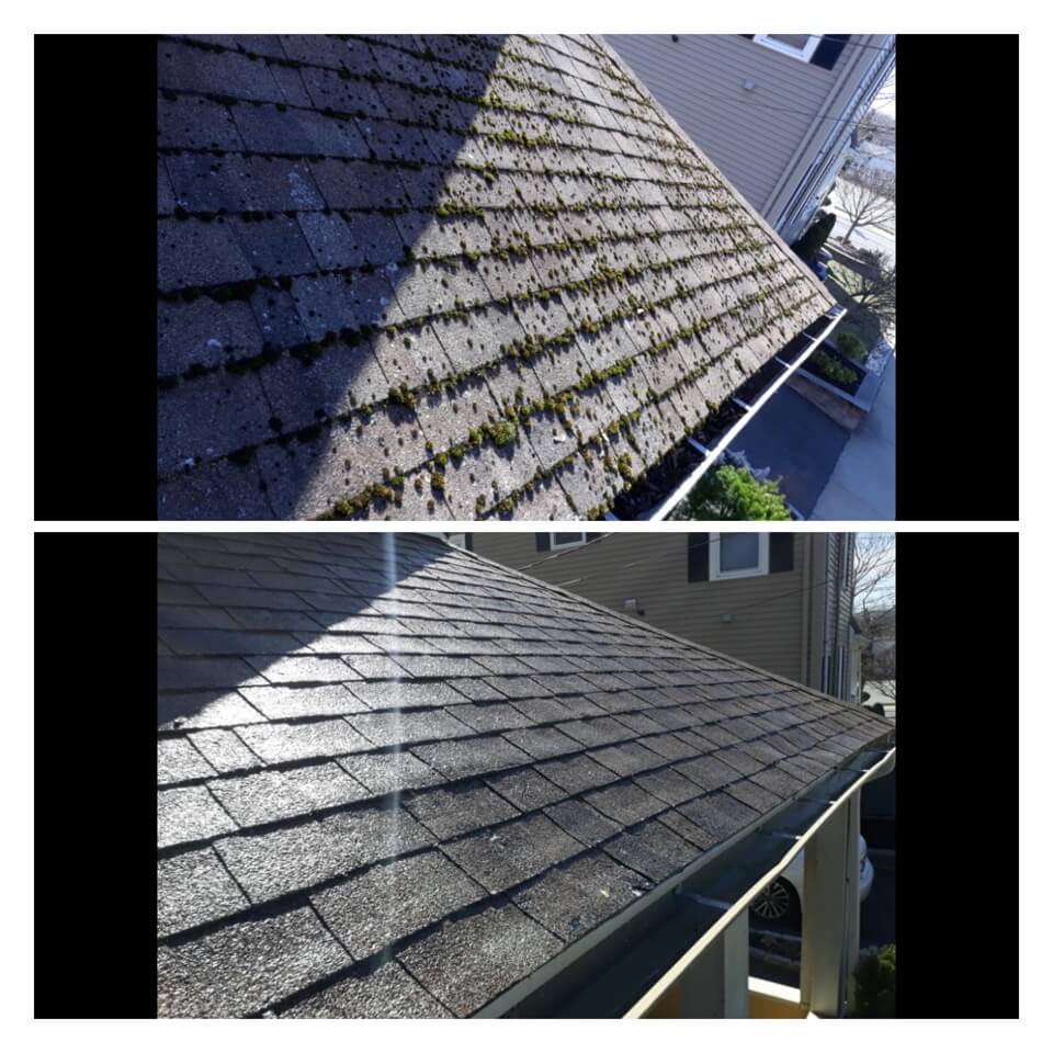 HiCleaners is the most experienced company in Groveland, MA that deals with roof washing and roof soft washing. All of our employees are trained to recognize precise solution mixing ratios to provide you with the safest and most effective soft washing service. Roofs are a commonly neglected part of a house due to the fact that most people don’t have ladders to access it, so it is very easy to just leave it alone and forget about problems that may start to arise. Just like many home owners, discoloration and small bits of moss on a roof can be overlooked because of the misconception that it is just aesthetic. However, it isn’t just aesthetic, the moss slowly lifts the granules off the shingles which in turn shorten the life of the shingle. The moss also spreads, just like any bacteria if it is left alone for too long, it can quickly become a problem that spirals out of control. Call HiCleaners for a free quote, we only use the most advanced eco-friendly solutions and equipment to make sure the job is done right, for the safety of the employees, your plants, grass, pets, and children.