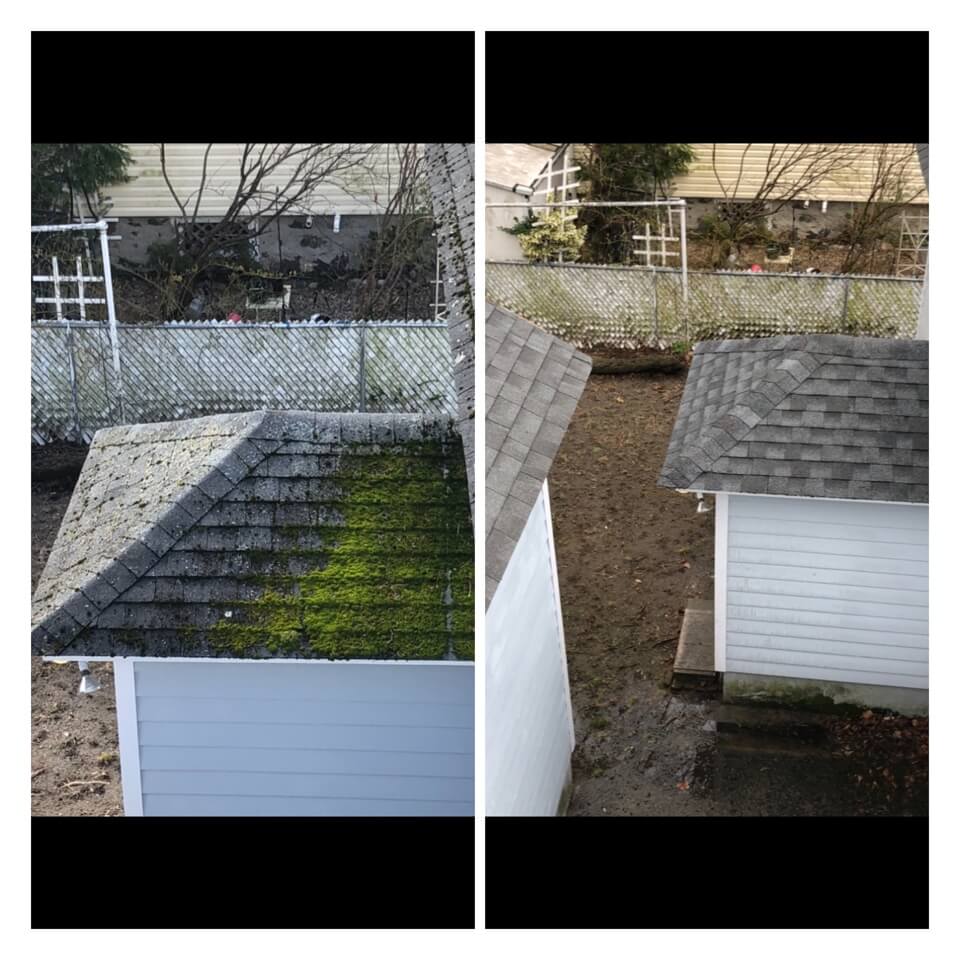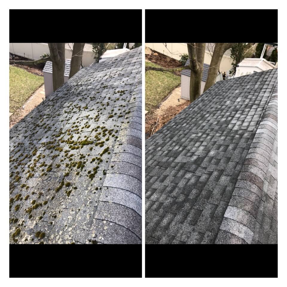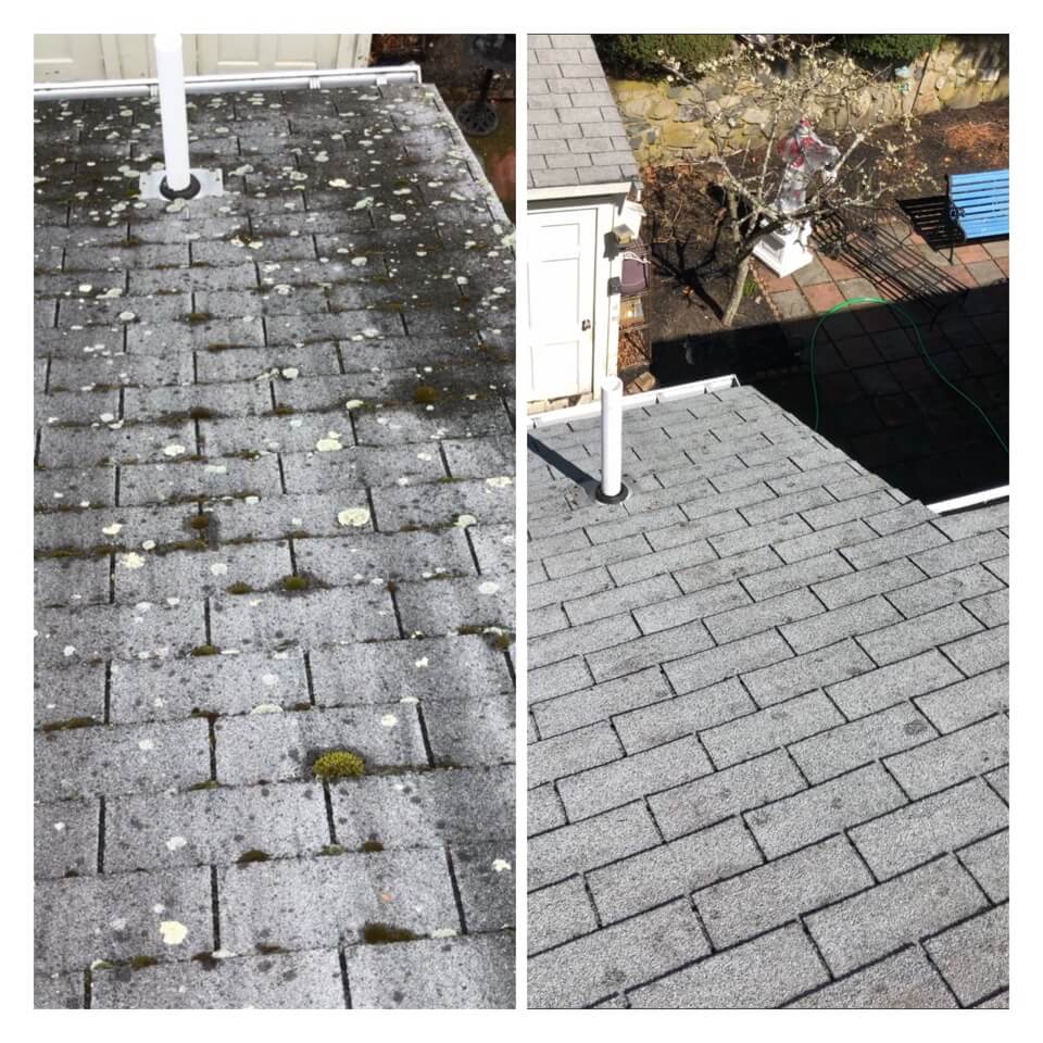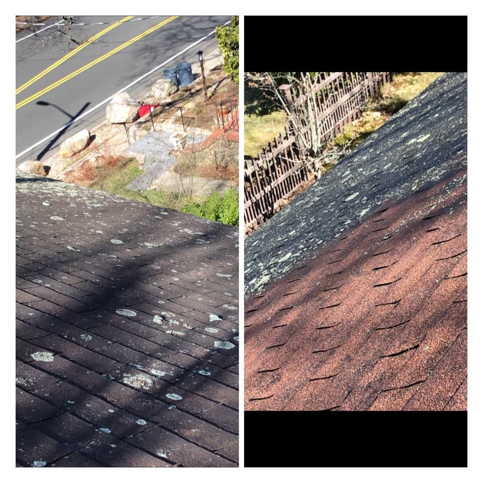 HiCleaners is the most experienced company in Groveland, MA that deals with roof washing and roof soft washing. All of our employees are trained to recognize precise solution mixing ratios to provide you with the safest and most effective soft washing service. Roofs are a commonly neglected part of a house due to the fact that most people don’t have ladders to access it, so it is very easy to just leave it alone and forget about problems that may start to arise. Just like many home owners, discoloration and small bits of moss on a roof can be overlooked because of the misconception that it is just aesthetic. However, it isn’t just aesthetic, the moss slowly lifts the granules off the shingles which in turn shorten the life of the shingle. The moss also spreads, just like any bacteria if it is left alone for too long, it can quickly become a problem that spirals out of control. Call HiCleaners for a free quote, we only use the most advanced eco-friendly solutions and equipment to make sure the job is done right, for the safety of the employees, your plants, grass, pets, and children.
